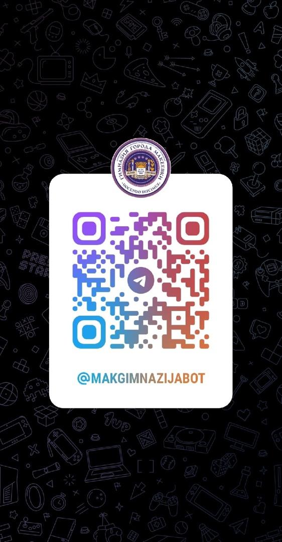 Найти его можно через поиск в Telegram, введя запрос @MakgimnazijaBot или же отсканировать QR-код