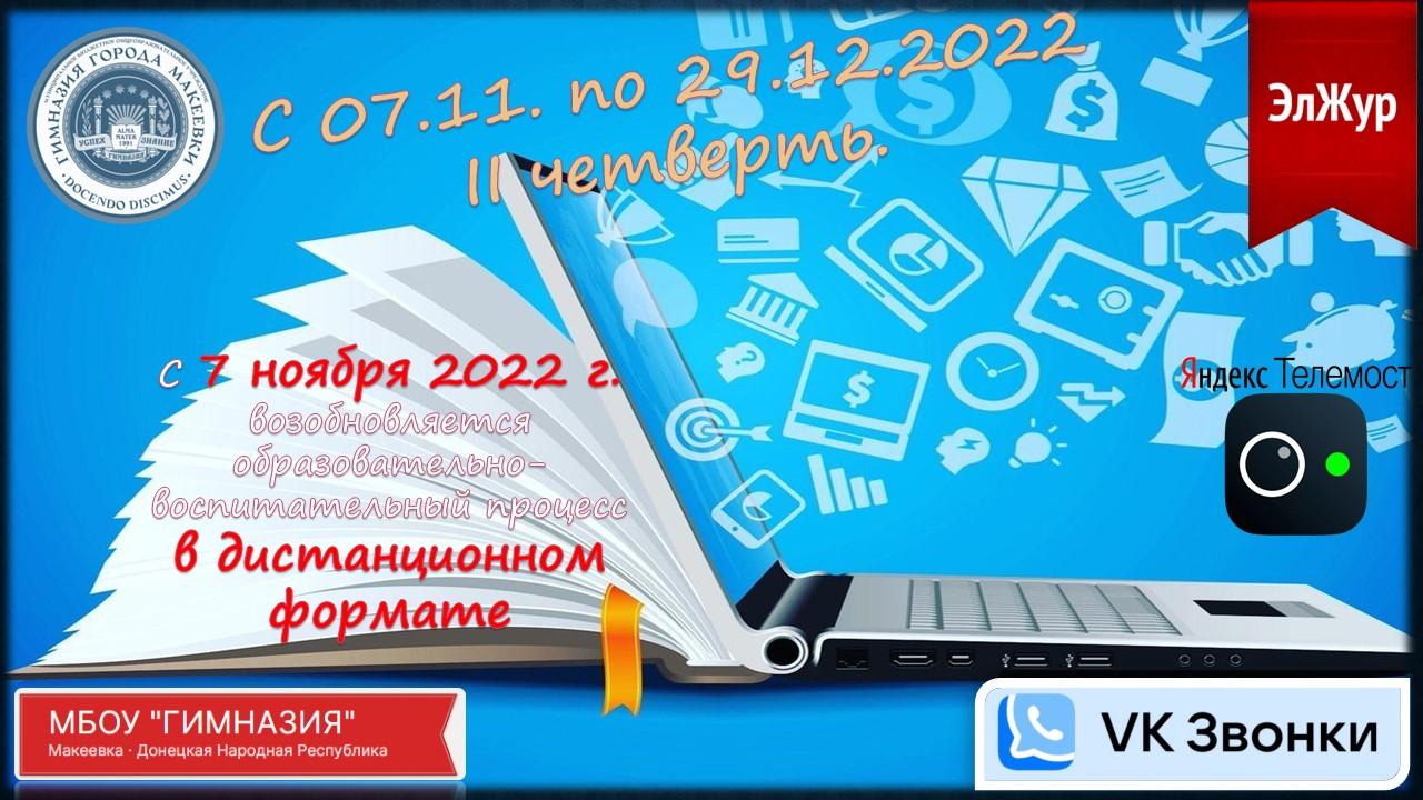 С 07.11.2022 г. возобновляется образовательно-воспитательный процесс с применением электронного обучения и дистанционных образовательных технологий.